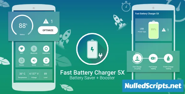 Fast Battery Charger 5x is an application that provide a great support to your Phone with complete battery information. This amazing battery optimizer app have a Great Easy to Use User Interface and brilliant functions that support your phone by giving 50% more battery life. This optimize battery app will show the battery level as battery information. It can start working and saving battery life on one touch. This is great power manager tool for your device. It provides accurate battery status such as temperature, voltage and level. Provide battery details in a great Graphic interface.