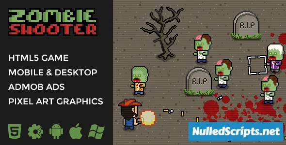 Zombie Shooter is an HTML5 isometric shooter in 8-bit style, built in Construct 2 and optimized for both mobile and desktop. Zombie Shooter's vintage pixel art graphics are inspired by 8-bit games from Nintendo consoles. Watch the live demo above and use W,A,S,D to move and left mouse button to shoot. The rule of the game is simple - shoot the hordes of zombies and survive as long as you can!