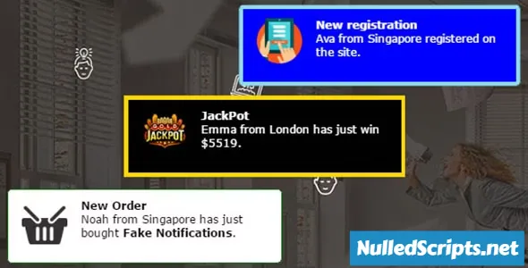 Fake Notifications - an effective marketing tool designed to stimulate the conversion of site visitors to customers. Create and place at the desired location on your website animated notifications that show visitors fake registered user activity such as site logins, orders or subscriptions, social media mentions and any other activity.