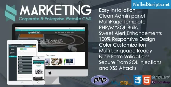 Marketing - Corporate & Enterprise Website CMS offers the option to have a nice one page / multi page template as your own website, or you can use it as an early page to announce a new product launch or even a landing page with some information. Also, a powerful admin panel will help you get the job done quite easily.