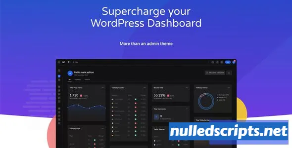 A clean and modern WordPress admin extension with a streamlined dashboard, Google Analytics and woocommerce Integration, powerful content library, dark mode, white label and much more.