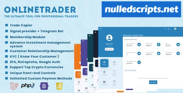 As a professional trader, OnlineTrader is your No 1 solution for creating an investment management or pool trading platform, and multiple account management (MAM) platform. OnlineTrader makes it easy for you to run your own investment system within minutes, your users can integrate with MT4 easily for account management. It is a full responsive & dynamic investment Platform built with Laravel Framework.
